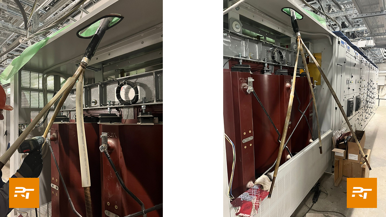 В ходе монтажа были отмечены сложные узлы подключения, в частности — соединение сухого трансформатора с кабелем БПИ. Конструктивные особенности оборудования потребовали увеличенной длины разделки жил по сравнению со стандартными решениями.