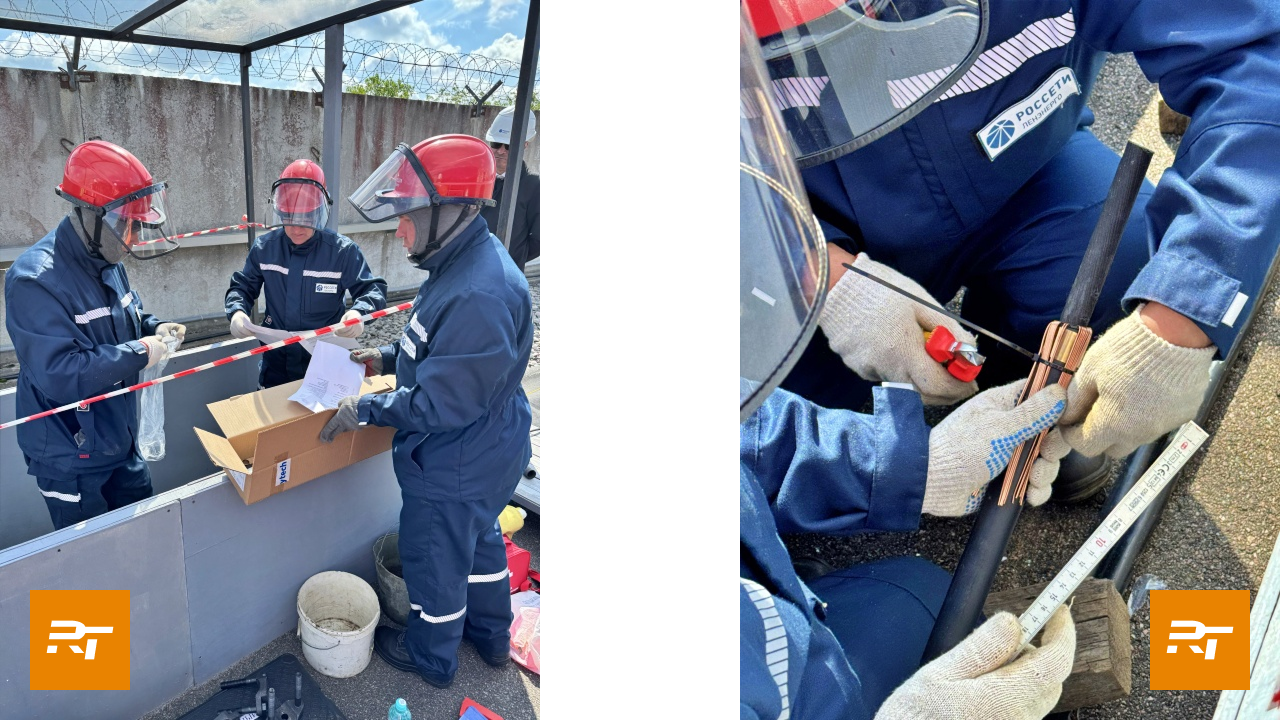 - ремонт кабельной линии 10 кВ на макете траншеи с двумя фидерами одножильных кабелей СПЭ с реальным поиском повреждения одного из кабелей и последующим монтажом соединительной муфты производства ООО «Райтек» POLJ-12/1x120-240-RU;