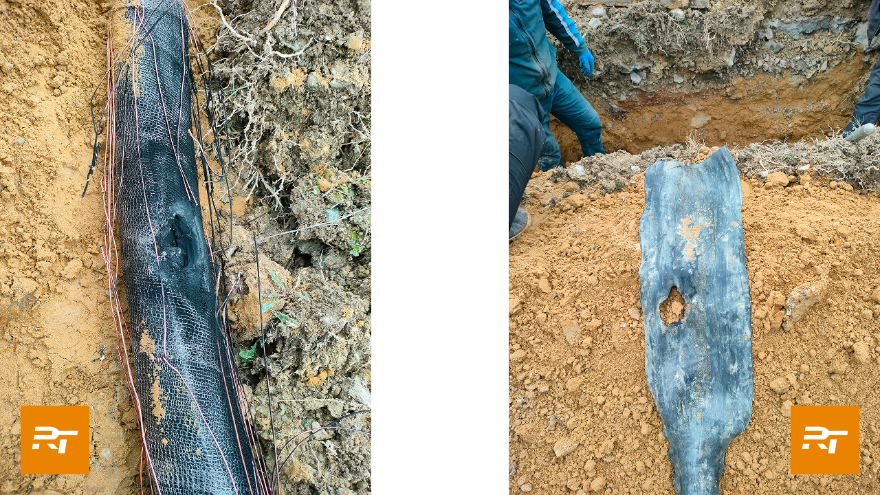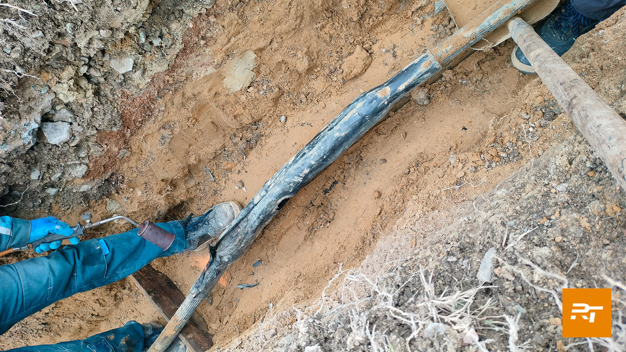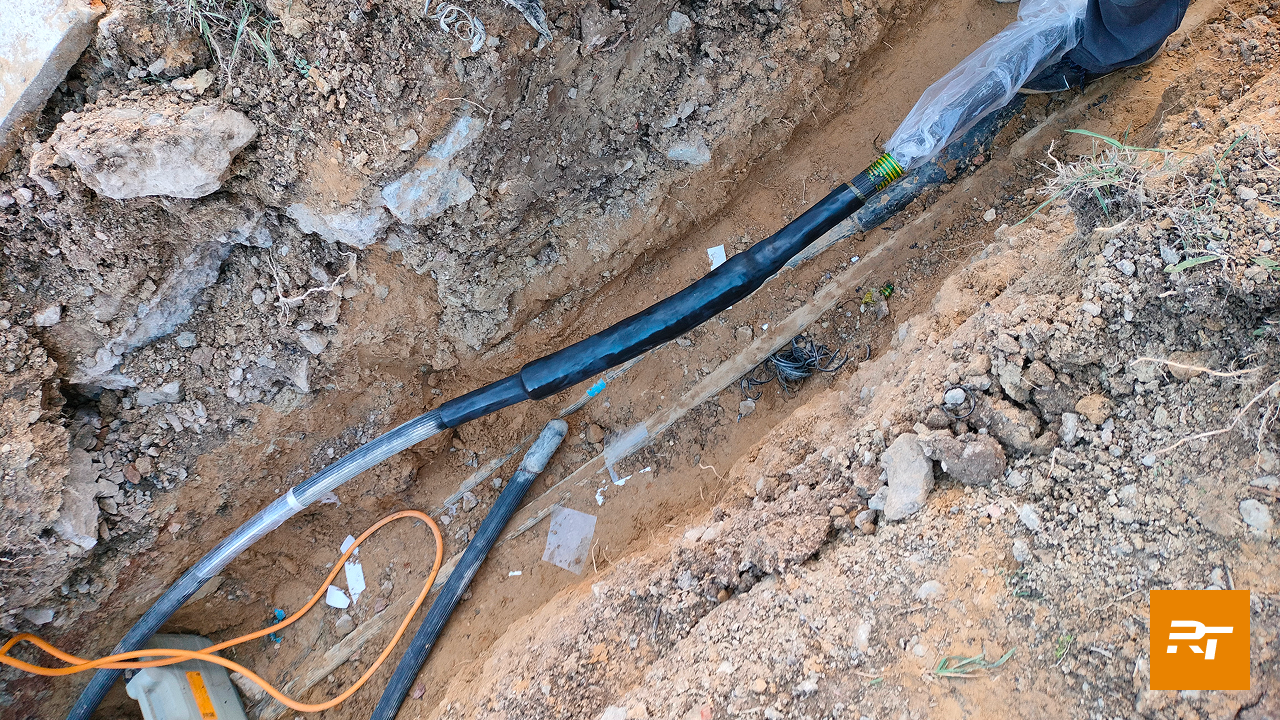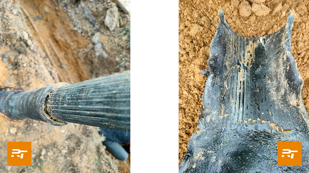 Для замены были применены соединительные муфты Райтек типа POLJ-42/1x120-240-RU. В ходе ремонта поврежденная муфта была удалена, на ее место установлена кабельная вставка уже с двумя муфтами. Также была продемонстрирована обязательная технологическая операция, которой нельзя пренебрегать: корректное и тщательное удаление продольных ребер на требуемых длинах для лучшей адгезии клеевых и мастичных материалов и обеспечения наилучшей герметизации кабельной арматуры.
